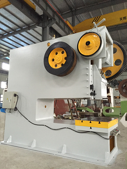 J21系列壓力機是普通型開式固定臺曲柄壓力機,其特點是左右開式機身(即C形機身),工作臺在三個方向敞開,裝、卸模具和操作都比較方便。為機械化、自動化提供了良好的條件,因而被廣泛采用,它是板料沖壓生產(chǎn)的主要設(shè)備,可用于沖孔、落料、切邊、彎曲、淺拉伸和成形等工序。